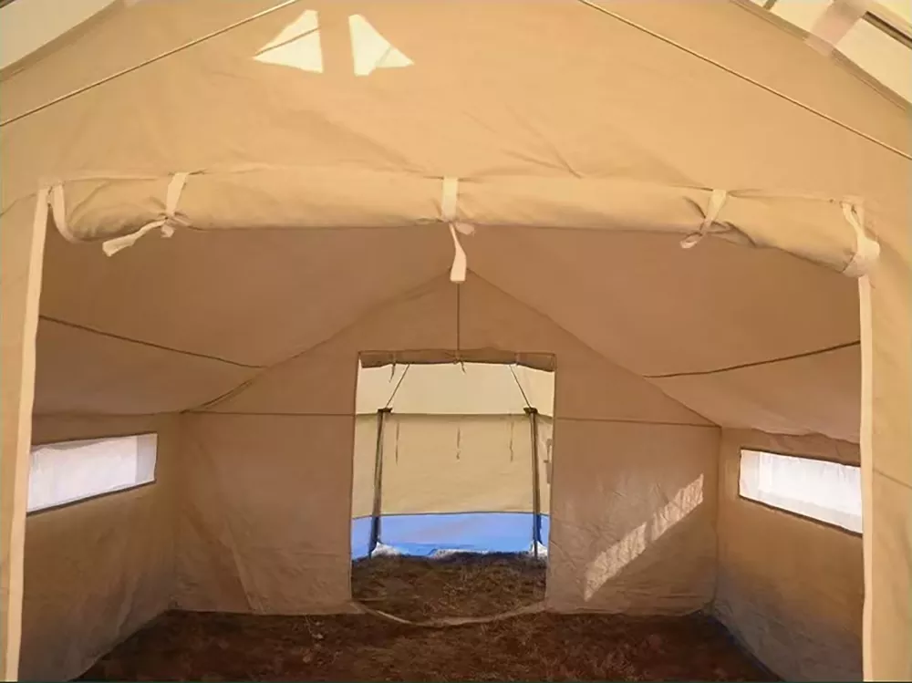 Khemah luar: Campuran kapas poliester atau fabrik berlamina HDPE, menampilkan perlindungan tiga kali ganda (kalis air, kalis api, kalis UV)